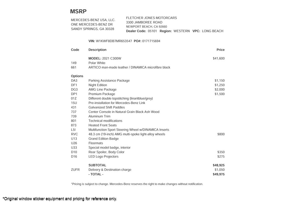 Fletcher Jones Motorcars, the nation’s #1 certified pre-owned Mercedes-Benz sales center, presents this 2021 Mercedes-Benz C 300 Sedan. This Mercedes-Benz has 33,058 miles and comes in a Polar White on Black color combination. Live out of the area? Contact us to discuss convenient delivery options. (949) 718-3000