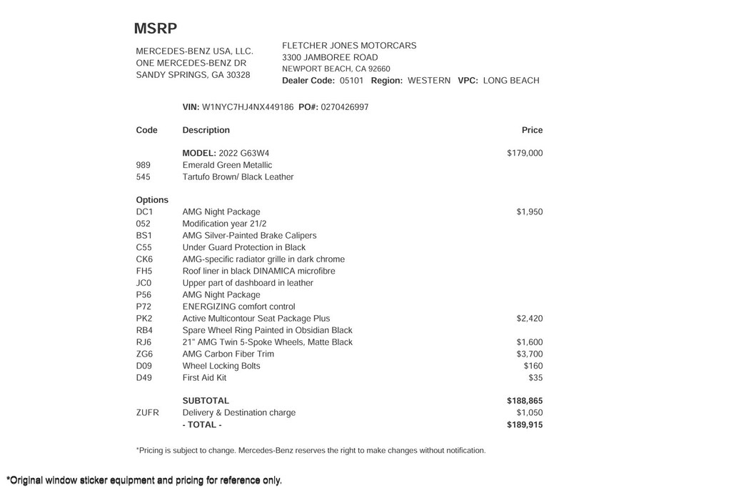 Fletcher Jones Motorcars, the nation’s #1 certified pre-owned Mercedes-Benz sales center, presents this 2022 Mercedes-Benz AMG G 63 4MATIC SUV. This Mercedes-Benz has 35,779 miles and comes in a Emerald Green Metallic on Tartufo Brown/Black color combination. Live out of the area? Contact us to discuss convenient delivery options. (949) 718-3000
