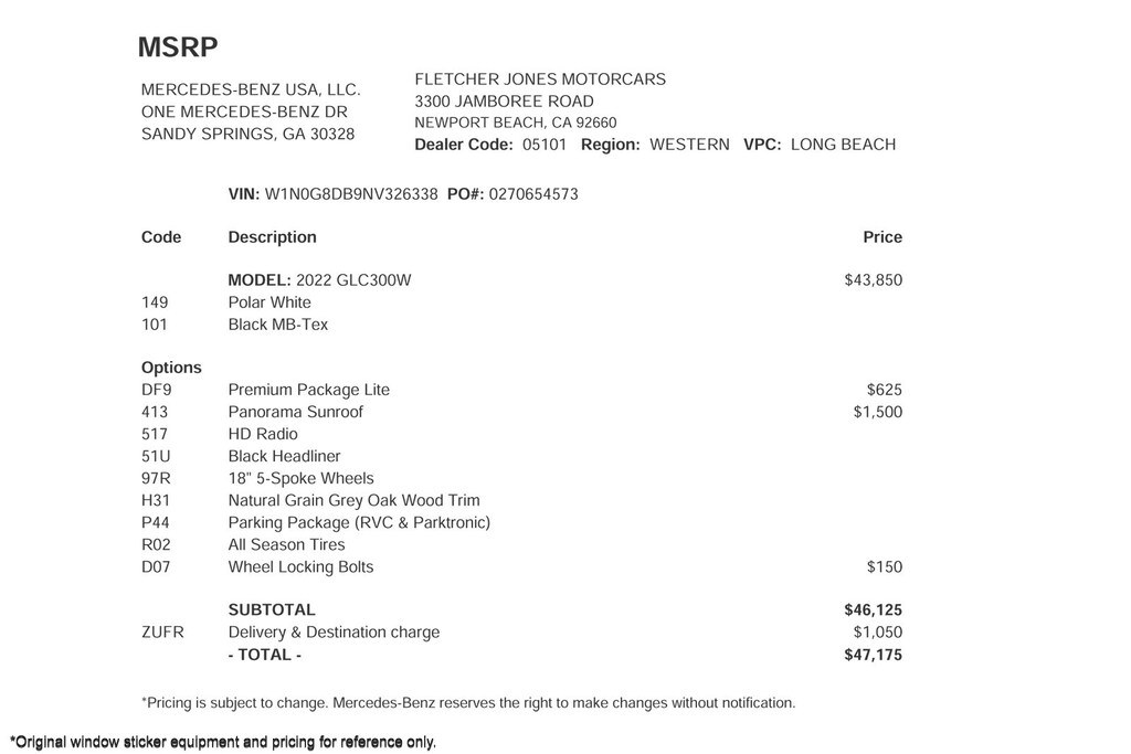 Fletcher Jones Motorcars, the nation’s #1 certified pre-owned Mercedes-Benz sales center, presents this 2022 Mercedes-Benz GLC 300 SUV. This Mercedes-Benz has 30,691 miles and comes in a Polar White on Black color combination. Live out of the area? Contact us to discuss convenient delivery options. (949) 718-3000