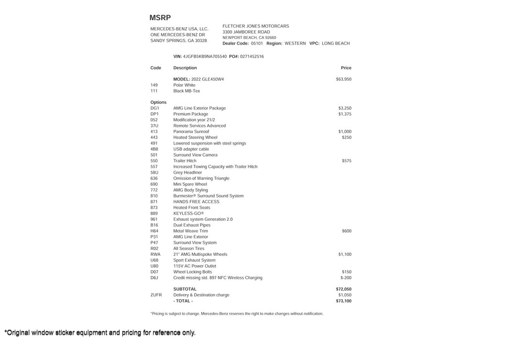 Fletcher Jones Motorcars, the nation’s #1 certified pre-owned Mercedes-Benz sales center, presents this 2022 Mercedes-Benz GLE 450 4MATIC SUV. This Mercedes-Benz has 37,821 miles and comes in a Polar White on Black color combination. Live out of the area? Contact us to discuss convenient delivery options. (949) 718-3000