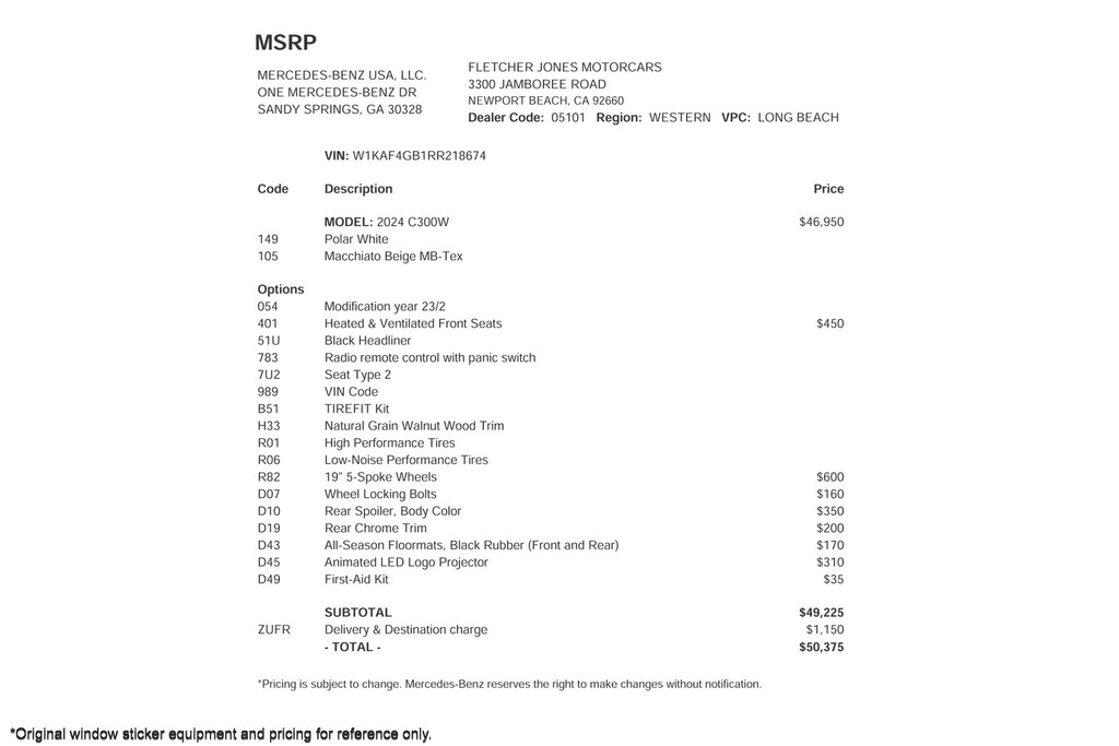 Fletcher Jones Motorcars, the nation’s #1 certified pre-owned Mercedes-Benz sales center, presents this 2024 Mercedes-Benz C 300 Sedan. This Mercedes-Benz has 14,658 miles and comes in a Polar White on Macchiato Beige color combination. Live out of the area? Contact us to discuss convenient delivery options. (949) 718-3000