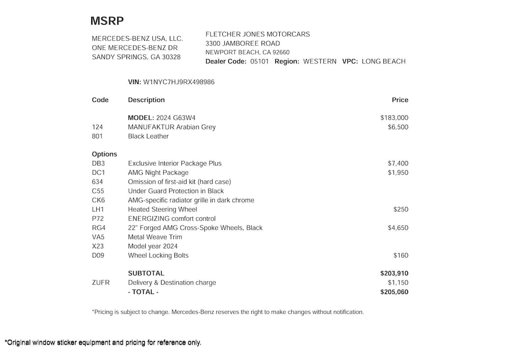 Fletcher Jones Motorcars, the nation’s #1 certified pre-owned Mercedes-Benz sales center, presents this 2024 Mercedes-Benz AMG G 63 4MATIC SUV. This Mercedes-Benz has 9,697 miles and comes in a Manufaktur Arabian Grey on Black color combination. Live out of the area? Contact us to discuss convenient delivery options. (949) 718-3000