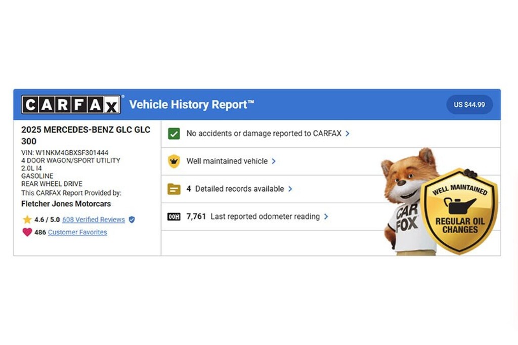 Lease specials available on this GLC! Fletcher Jones Motorcars, the nation’s #1 certified pre-owned Mercedes-Benz sales center, presents this 2025 Mercedes-Benz GLC 300 SUV. Only 8,831 miles on this courtesy service loaner! This is a rare opportunity to purchase an ultra-low mileage, well upgraded, Mercedes-Benz at a tremendous savings. This excellent condition GLC 300 SUV comes in a stunning Polar White on Black color combination. If we can assist you with any questions, or to schedule a test drive, please contact us at (949) 718-3000