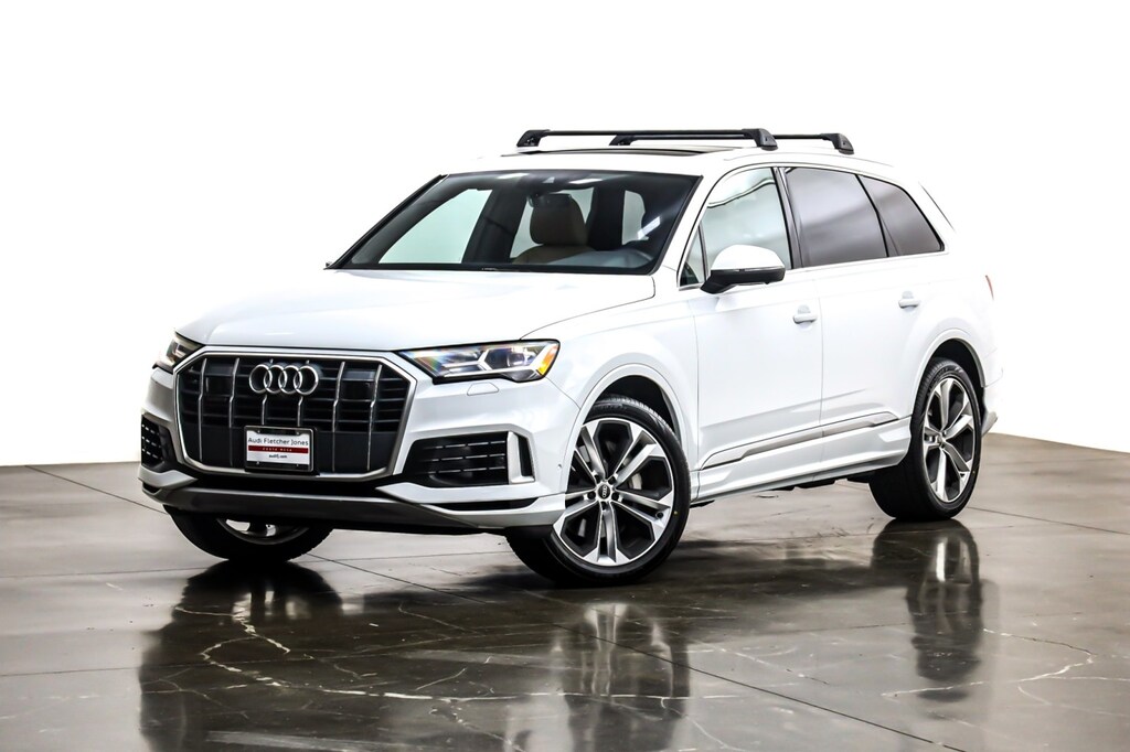 Audi Fletcher Jones presents this 2021 Audi Q7 Premium Plus 55 TFSI quattro. This Audi has 49,613 miles and comes in a Glacier White Metallic on Saiga Beige color combination. Live out of the area? Contact us to discuss convenient delivery options. (949) 791-1500
