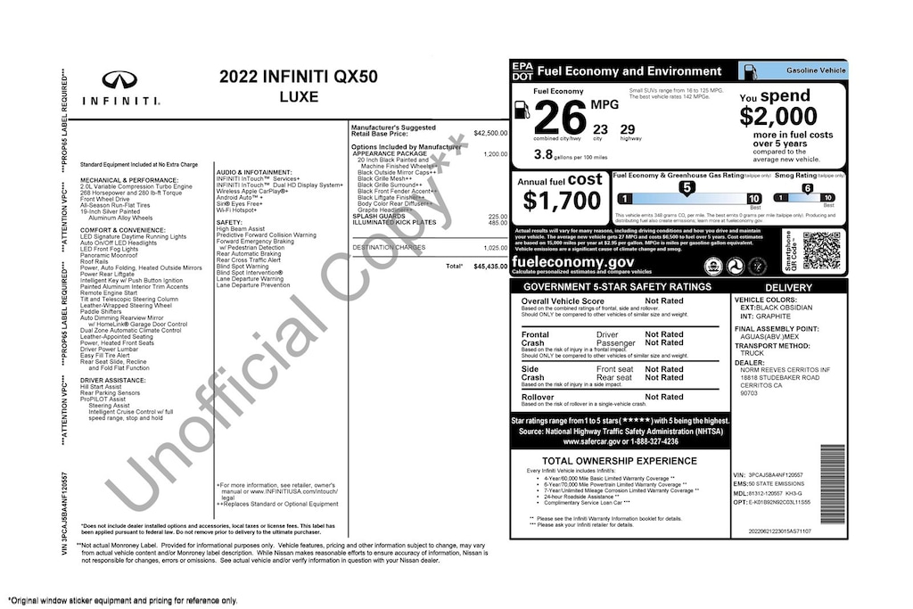 Audi Fletcher Jones presents this 2022 INFINITI QX50 LUXE FWD. This INFINITI has 26,344 miles and comes in a Black Obsidian on Graphite color combination. Live out of the area? Contact us to discuss convenient delivery options. (949) 791-1500