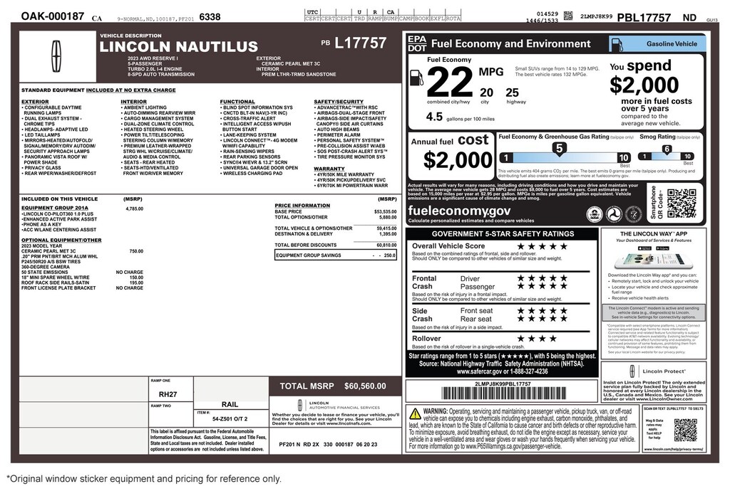 Audi Fletcher Jones presents this 2023 Lincoln Nautilus Reserve AWD. This Lincoln has 13,389 miles and comes in a Ceramic Pearl Metallic Tinted Clearcoat on Sandstone color combination. Live out of the area? Contact us to discuss convenient delivery options. (949) 791-1500