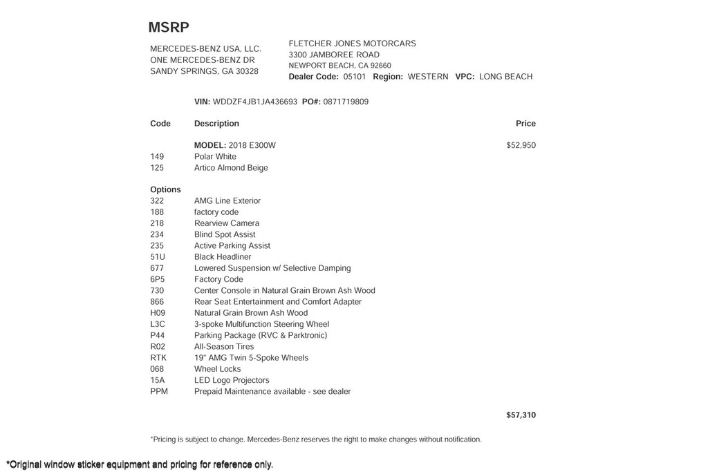 Fletcher Jones Motorcars, the nation’s #1 certified pre-owned Mercedes-Benz sales center, presents this 2018 Mercedes-Benz E-Class E 300 RWD Sedan. This Mercedes-Benz has 89,602 miles and comes in a Polar White on Macchiato Beige / Black color combination. Live out of the area? Contact us to discuss convenient delivery options. (949) 718-3000