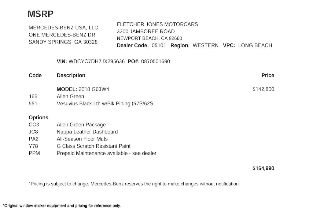 UPGRADED EQUIPMENT: Alien Green Package, Nappa Leather Dashboard, G Class Scratch Resistant Paint