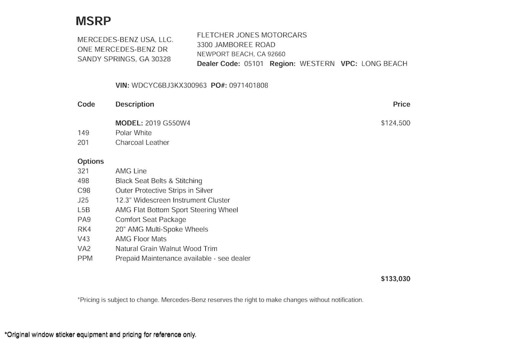 Fletcher Jones Motorcars, the nation’s #1 certified pre-owned Mercedes-Benz sales center, presents this 2019 Mercedes-Benz G-Class G 550 4MATIC SUV. This Mercedes-Benz has 64,004 miles and comes in a Polar White on Black color combination. Live out of the area? Contact us to discuss convenient delivery options. (949) 718-3000