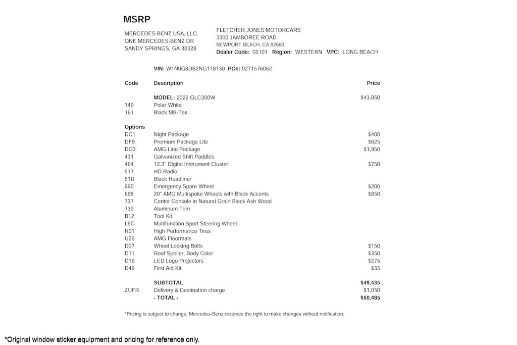Fletcher Jones Motorcars, the nation’s #1 certified pre-owned Mercedes-Benz sales center, presents this 2022 Mercedes-Benz GLC GLC 300 SUV. This Mercedes-Benz has 26,190 miles and comes in a Polar White on AMG Black color combination. Live out of the area? Contact us to discuss convenient delivery options. (949) 718-3000