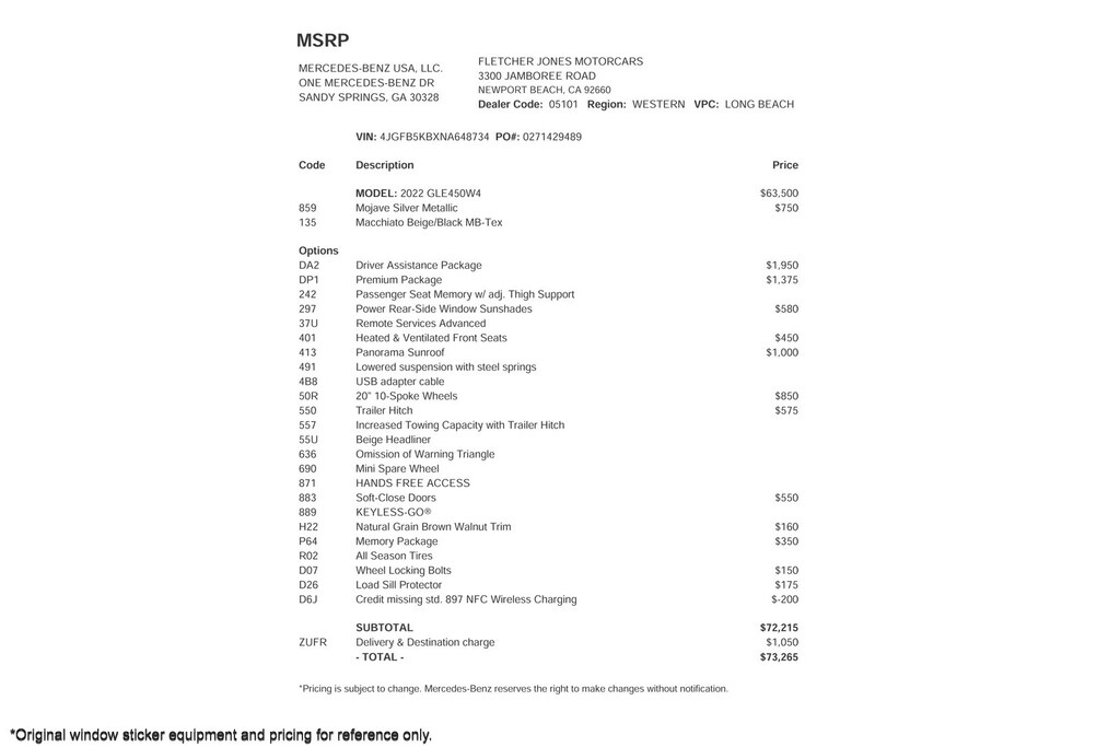 Fletcher Jones Motorcars, the nation’s #1 certified pre-owned Mercedes-Benz sales center, presents this 2022 Mercedes-Benz GLE GLE 450 4MATIC SUV. This Mercedes-Benz has 43,730 miles and comes in a Mojave Silver Metallic on Macchiato Beige/Black color combination. Live out of the area? Contact us to discuss convenient delivery options. (949) 718-3000