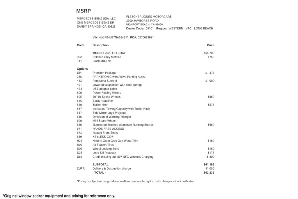 UPGRADED EQUIPMENT: Premium Package, PARKTRONIC with Active Parking Assist, Panorama Sunroof, lowered suspension with steel springs, Power Folding Mirrors, 20" 10-Spoke Wheels, Black Headliner, Trailer Hitch, Increased Towing Capacity with Trailer Hitch, Side Mirror Logo Projector, Illuminated Brushed Aluminum Running Boards, Heated Front Seats, Natural Grain Grey Oak Wood Trim, Load Sill Protector