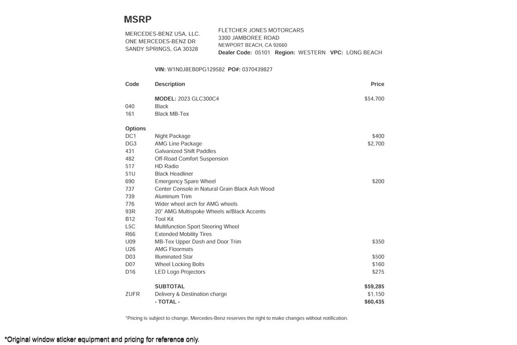 Fletcher Jones Motorcars, the nation’s #1 certified pre-owned Mercedes-Benz sales center, presents this 2023 Mercedes-Benz GLC GLC 300 4MATIC Coupe. This Mercedes-Benz has 22,744 miles and comes in a Black on AMG Black color combination. Live out of the area? Contact us to discuss convenient delivery options. (949) 718-3000