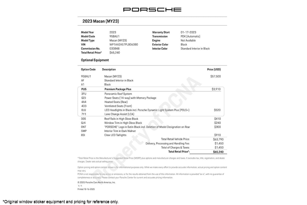 UPGRADED EQUIPMENT: Window Trim in High Gloss Black, Clear LED Taillights, Porsche Logo in Satin Black W/O RR MDL Designation, Roof Rails in High Gloss Black, Premium Package Plus