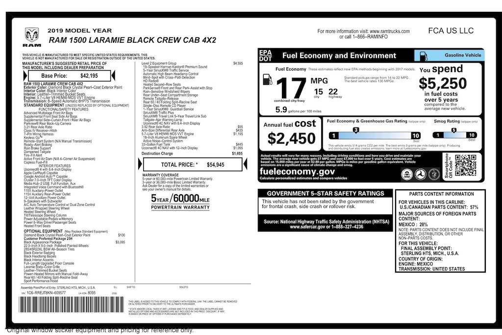 UPGRADED EQUIPMENT: Black Appearance Package, Level 2 Equipment Group, 3.92 Rear Axle Ratio, Anti-Spin Differential Rear Axle, 5.7–Liter V8 HEMI® MDS VVT Engine, 33-Gallon Fuel Tank, Uconnect® 4C NAV with 12–Inch Display