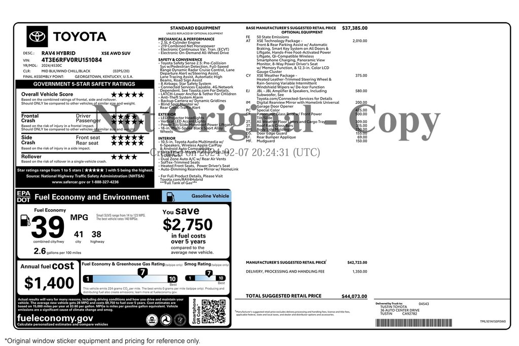 Fletcher Jones Motorcars, the nation’s #1 certified pre-owned Mercedes-Benz sales center, presents this 2024 Toyota RAV4 Hybrid XSE AWD (Natl). This Toyota has 18,313 miles and comes in a Wind Chill Pearl/midnight Black Metallic on Black color combination. Live out of the area? Contact us to discuss convenient delivery options. (949) 718-3000